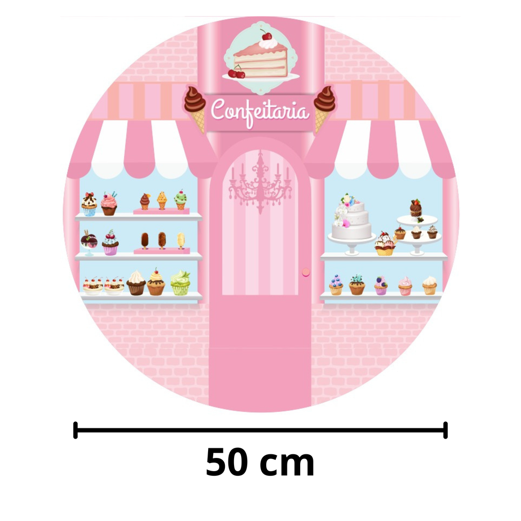 Transforme sua mesa posta ou cenário de festa com um painel cheio de charme inspirado no universo da confeitaria. Perfeito para deixar o ambiente mais alegre, temático e visualmente irresistível, ele valoriza qualquer decoração com um toque doce e profissional.